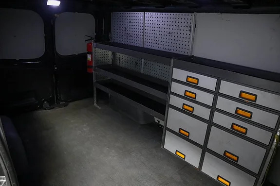 Vůz je vybaven dílenským vybavením, tažnou tyčí, navigací a palivovým topením, což jej činí připraveným pro celoroční provoz. Praktický nakládací prostor a dobrý komfort obsluhy z něj činí vhodného jak pro služební jízdu, tak pro delší pracovní dny. **** 12V zásuvka ABS Klimatizace Přední airbag Kontrola trakce Uzavírací airbag pro spolujezdce Asistence při rozjezdu do kopce Centrální zámky Pouzdro digitálního měřiče Tažné tyč, pevně Elektrické krby (přední část) Elektrická boční zrcátka Euro 6 Palubní počítač Čtecí lampa Senzor deště Posilovač řízení Boční airbagy Boční závěsy Zrcadlo na líčení Imobilizér Prodávané ve Švédsku Vyhřívaná sedadla, přední sedadla Vnější teploměr Navigace Tempomat Koleje Rohože (guma) Čalounění (látka) Ohřívač motoru Omezovač rychlosti Hands-free připojení Multifunkční volant Plochý nákladový prostor