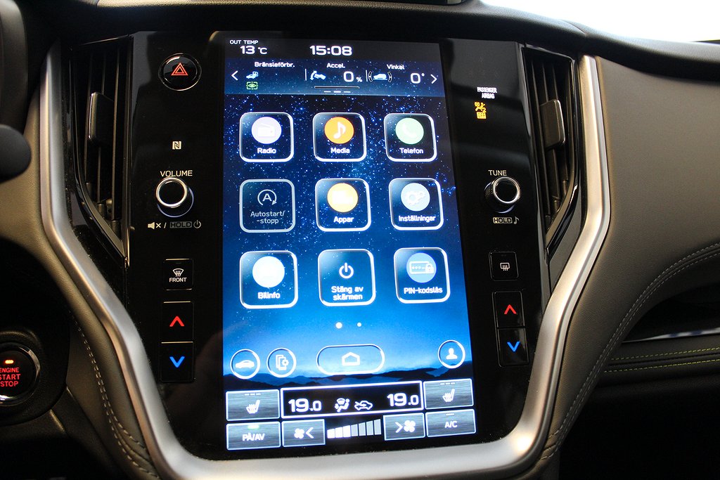 Vůz je vybaven pevným tažným zařízením a LED rampou, 11,6palcový Full HD infotainment s 6 reproduktory & Apple Car Play/Android Auto (bezdrátový),2-zónová klimatizace s prachovým filtrem,AUX vstup a dva USB vstupy (USB C 3.0A),Elektricky sklopné vnější zrcátka s vestavěnými směrovkami,Sklopné zadní sedadlo z kufru,Výškově nastavitelné přední úchyty pásů,Vnitřní zpětné zrcátko s automatickým stmíváním,Výsuvný kryt soukromí nákladového prostoru,Vnitřní panely v Startexu s zeleným kontrastním prošíváním,Multifunkční displej*3 a LCD ukazatel, SIDRIVE (SUBARU Intelligent Drive)*4, čalounění Startex. umělá kůže z vodoodpudivého materiálu, výškově a podélně nastavitelný volant, čelní sklo a boční okna vpředu/vzadu s UV ochranou, výstražný systém pro vozidla jedoucí vzadu při couvání a automatické brzdění při couvání ************** AC kanál v zadní středové konzole Adaptivní tempomat Airbagy vpřed Aktivní opěrky hlavy vpřed Hliníkové ráfky 18inch Gun metalizované Hliníkové pedály Zadní loketní opěrky ATV (kurýr) Automatické podržení vozidla Automatické stmívání dálkových světel Automatická potkávací světla Automatická dálková světla Couvací kamera se zapuštěnou stranou Zpětná zrcátka černá Osvětlení kufru Znak vzadu černý Dětská pojistka v zadních dveřích Bi-LED světlomety Automatický ukazatel směru Rozhraní Bluetooth® Brzdový asistent Prioritizace brzd Upozornění na nezapnutý bezpečnostní pás na všech místech Středová přihrádka Odmrazovač vpředu a boky Dělené zadní sedadlo 60/40 Zadní mlhová světla Mlhová světla vpředu Přední a zadní držáky nápojů Varování před mrtvým úhlem (BLIS) Kapsy ve dveřích s držáky na nápoje ECO metr Elektrické okenní výtahy přední a zadní strana*1 Elektronická parkovací brzda Elektronický motor imobilizéru Elektricky ovládané dveře zavazadlového prostoru Ruce Elektricky vyhřívané zadní okno s časovačem Elektricky vyhřívané čelní sklo ve spodní části Vyhřívaný volant Elektricky vyhřívaná vnější zpětná zrcátka Zrak (pomůcka při sledování) Automatické brzdění s varováním před kolizí Adaptivní tempomat Upozornění na linku Asistent pro udržování v jízdním pruhu Upozornění na vibrace volantu) Asistent pro vybočení z jízdního pruhu Asistent pro vybočení z jízdního pruhu Dálkové centrální zamykání Přední mřížka Černá Sedadlo řidiče elektricky nastavitelné 10 pozic Odkládací schránka pod podlahou zavazadlového prostoru Výstražné blikání pro panické brzdění Asistent pro sjíždění strmých svahů Držák na kopec Přerušované stěrače za Úchyty dětských sedaček ISOFIX Mapové lampy s osvětlením vpřed Kolenní airbag Stanoviště řidiče Nafukovací závěsy Ochrana proti nárazu sloupek řízení Světla s přisvěcováním do zatáček Načíst oka Nastavitelná opěrka stehen Kůží potažený volant a hlavice řadicí páky Kosmetická zrcátka s osvětlením vpřed Středová konzola s 12V zásuvkou Přístupová karta a startovací tlačítko Sedadlo spolujezdce elektricky nastavitelné 8 pozic Ovládací prvky na volantu pro stereo Řadicí pádla na volantu Dešťový senzor Boční airbagy vpřed Ochrana proti bočnímu nárazu ve dveřích Samozamykací dveře Systém Start/Stop Vyhřívání sedadel vpředu i vzadu Proplachování světlometů Střešní ližiny Těžké zatížení (pohon 100 kg 318 kg stacionární) Střešní spoiler Tónované čtverce Systém kontroly trakce (kontrola trakce) USB nabíječky 2ks zadní sedadlo 2 1 zesilovač Rozkládací háčky na zavazadla Systém řízení dynamiky vozidla Odpojitelný Topné potrubí Zadní sedadlo XMODE 2 kroky Tažné zařízení (pevné) LED rampa