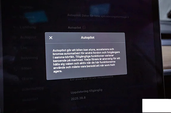ABS ACC 2 klimatické zóny Přední airbag Kontrola trakce Uzavírací airbag pro spolujezdce Zadní kamera Asistence při rozjezdu do kopce Rodičovský Asistence brzdění Centrální zámky Počítač pro celkovou schopnost autonomního řízení. ECC Elektrické víko kufru Elektrická sedadla s pamětí Elektrické sedadlo pro cestující Euro NCAP 5 Asistence řidiče Isofix Poplach Světelný senzor Navigace Panoramatická skleněná střecha Senzor deště Boční airbagy Boční závěsy Kožené čalounění Standard Range Plus Imobilizér Prodávané ve Švédsku Tónované čtverce Dotyková/dotyková obrazovka Alarm únavy Tepelné čerpadlo Vnější teploměr