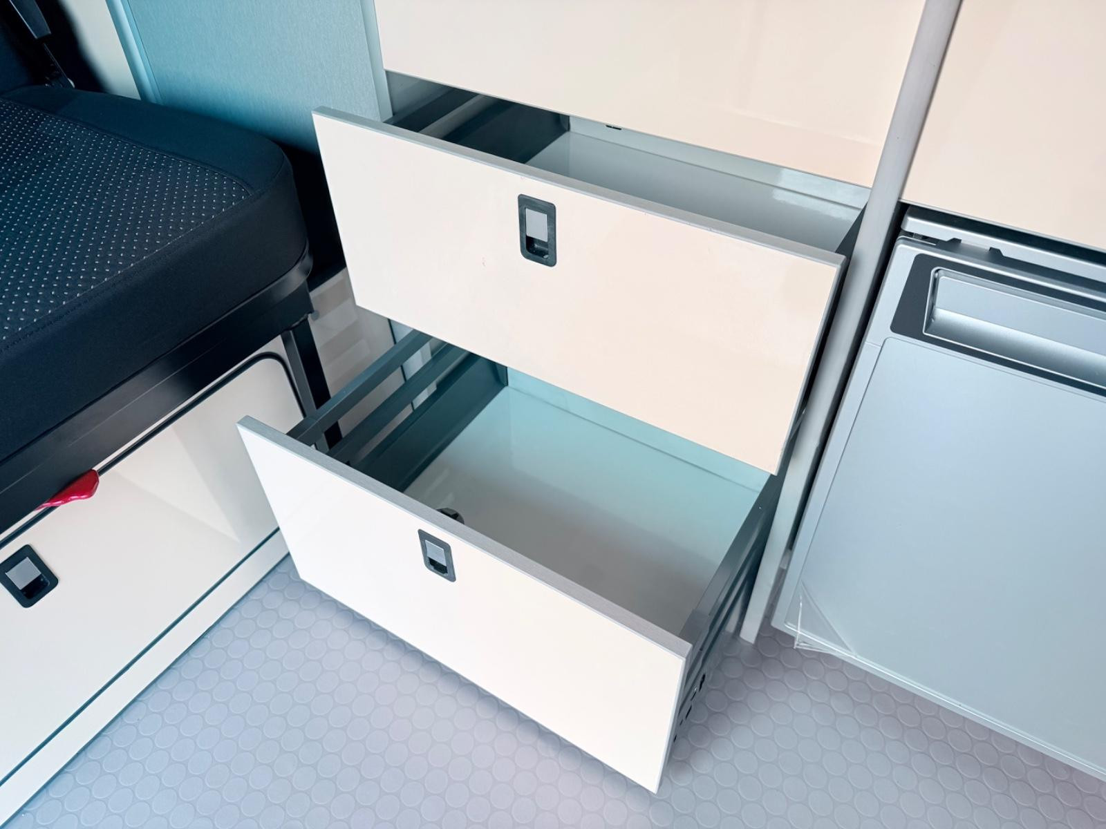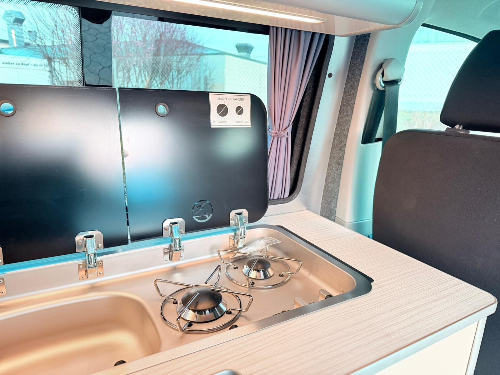 Přestavba obytného vozu VW T6 Transporter vysoké kvality | Nová STK a servis | První majitel K prodeji je vůz VW T6 od prvního majitele, který jsme v Německu přestavět na plně vybavený obytný vůz v kalifornském stylu s dodržením nejvyšších standardů kvality. ********* KEMPOVACÍ VYBAVENÍ Interiér je optimalizován pro pohodlné setkávání, stravování, práci a hraní: Otočné přední sedadlo Skládací, posuvný a odnímatelný stůl Vysoce kvalitní tesařská pracovní deska Panty s tlumeným zavíráním Možnost nakládání pod dvoumístnou lavicí (např. pro lyže) Úložný prostor v podběhech kol Dýhované hrany, bez lemování Povrch postele ve stejném dekoru jako tělo postele Robustní vinylová designová podlaha (voděodolná) VAŘENÍ: Kompletní kuchyňský kout jako ve velkém obytném voze: Vařič a dřez (2 hořáky) se skleněným krytem Vysoce kvalitní skládací kohoutek Čerpadlo na sladkou vodu 20 litrů sladké vody + 20 litrů odpadní vody Vnitřní dveře 48litrová kompresorová chladnička s mrazákem → až 3 dny soběstačná Další zásuvky 12V a 230V pro kuchyňské spotřebiče SPÁNEK 2 spací zóny – ideální pro páry, rodiny nebo přátele: Výklopná střecha s talířovým pružinovým systémem Pohodlné matrace + moskytiéra Odnímatelné polštáře do postele Vnitřní lůžko (12 cm dvouzónová studená pěna) s vysoce kvalitním potahem Spousta úložného prostoru pod vnitřní postelí TECHNOLOGIE A KEMPOVÁNÍ ELEKTROTECHNIKA Registrace obytného vozu (levnější daně a pojištění) Připojení k pobřežnímu napájení Trennrelais Posilovač nabíjení Dieselové nezávislé topení 2kW Baterie pod sedadlem řidiče Nabíječka pro druhou baterii Bezpečně přepínatelný palubní elektrický systém Solární systém na výklopné střeše 12V zásuvka Možnosti nabíjení přes USB INTERIÉR A ÚPRAVY Kompletní izolace (strop, boky, podlaha, podběhy kol) materiálem Armaflex Obývací prostor, obložení a zadní dveře potažené plstí Čistě, vysoce kvalitní a bez zápachu zpracováno