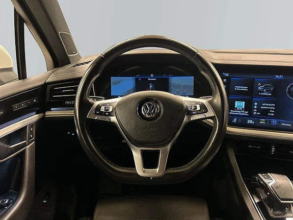 Volkswagen Touareg 2020 je prostorné a vyvážené SUV s důrazem na pohodlí, bezpečnost a výkon. Výkonný motor 3.0 V6 s výkonem 340 koní spolu s pohonem všech kol 4Motion a automatickou převodovkou zajišťuje stabilní a pohodlnou jízdu po celý rok. Auto je vybaveno mimo jiné tažným tyčí, elektrickým víkem kufru, letními pneumatikami na 21" originálních kolech VW, zimními pneumatikami HAKKAPELITTA 10, benzínovým topením, elektricky nastavitelnými sedadly, couvací kamerou, parkovacími senzory, navigací, vyhříváním volantu, head-up displejem, adaptivním tempomatem s asistencí dopravní zácpy, koženým čalouněním, audiosystémem od Dynaudio, adaptivním vzduchovým odpružením, Apple CarPlay, Android Auto, nočním viděním, digitálním krytem měřidla a mnoha dalšími produkty. **** Dálkově ovládané parkovací topení Tažná hmotnost 3500 kg Nejnovější služba březen 2026 Pohon všech kol Parkovací topení Vyhřívaný volant Kryt kufru Parkovací senzory Ruční brzda (elektronická) Tažná tyč, odnímatelná/otočná Centrální zámky Bluetooth Kufrové víko (automatické) Adaptivní tempomat ACC klimatizace Adaptivní vzduchové zavěšení Zvukový systém od Dynaudio Navigace HAKKAPELITTA 10 zimní pneumatiky Letní pneumatiky na 21" ráfcích VW 12V zásuvka 230V zásuvka ABS ACC ACC 2 klimatické zóny Přední airbag Akustické panely Android Auto Kontrola trakce Apple CarPlay Asistence řidiče Stmívané vnitřní zpětné zrcátko Uzavírací airbag pro spolujezdce Zadní kamera Asistence při rozjezdu do kopce Dětský zámek Hands-free připojení Asistence brzdění Pouzdro digitálního měřiče Tažné tyč, pevně Elektrické zdviháky (vpředu i vzadu) Elektricky skládací dveřní zrcátka Elektrická sedadla s pamětí Elektrické sedadlo pro cestující Elektrická boční zrcátka Euro 6 Euro NCAP 5 Omezovač rychlosti Asistence udržování jízdního pruhu Skládací zadní sedadla Palubní počítač Head-up displej Isofix Bezklíčový start Plně čalouněná kožená sedadla LED světlo Světelný senzor Ohřívač motoru (dálkově ovládaný) Ohřívač motoru Multifunkční volant Noční vidění Nouzové volání Přední parkovací senzor Koleje Ohřev volantu Senzor deště Posilovač řízení Boční airbagy Boční závěsy Rozpoznávání znaků Funkce start/stop Imobilizér Poplach Prodávané ve Švédsku Vyhřívaná sedadla vzadu Vyhřívaná sedadla, přední sedadla Dotyková/dotyková obrazovka Asistent přívěsu Bezdrátová nabíječka na telefon Alarm únavy Vyhřívané spirály USB zásuvka Vnější teploměr
