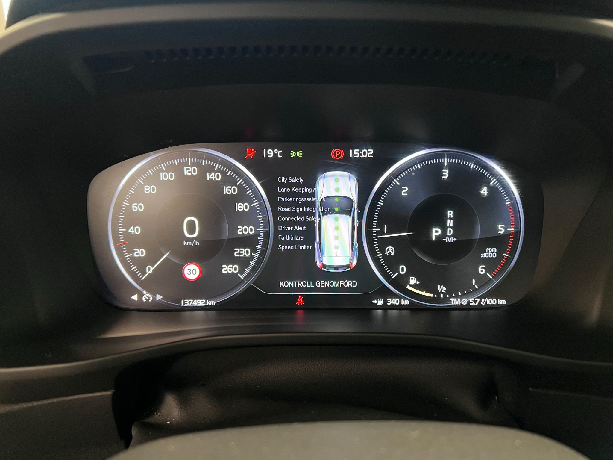 12V ZÁSUVKABrzdy ABSACCŘidič airbagu Airbag spolujezdce ProtiskluzovýAutomatická brzda Stmívání vnitřního zpětného zrcátka Uzavírací airbag spolujezdce Asistent rozjezdu do kopce RodičovskýBluetooth (handsfree)Brzdový asistent Centrální zamykání (dálkově ovládané)Dělené zadní sedadlo Pouzdro digitálního měřiče Tažné zařízeníElektrické zvedáky (přední a zadní)Elektricky sklopná vnější zpětná zrcátka Elektricky vyhřívaná boční zrcátka Euro 6Euro NCAP 5Omezovač rychlosti Plavba Sklopná zadní sedadla Palubní počítačZadní úchyty ISOFIXBezklíčový Nyckelfri Start Chlazená odkládací schránka Asistent jízdy v jízdním pruhu LED světlomety Světelný senzor Lampa na čteníKoberce (textilní)Multifunkční volant Kolejnice Dešťový senzor Rezervní kolo ServořízeníBoční airbagy Boční závěsy Rozpoznávání znakůKosmetické zrcátko Funkce Start/Stop Imobilizér Alarm proti krádežiŠvédské-prodáno Vyhřívání sedadel (vpředu)Dotyková/dotyková obrazovka Alarm únavy USB zásuvka Měřič venkovní teploty